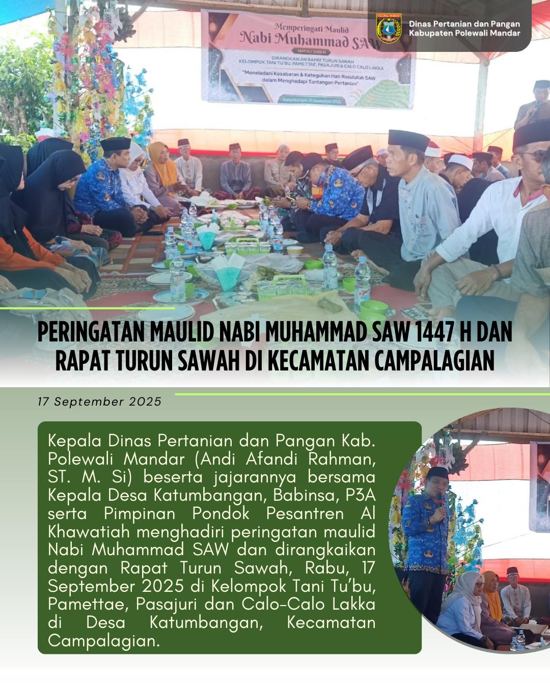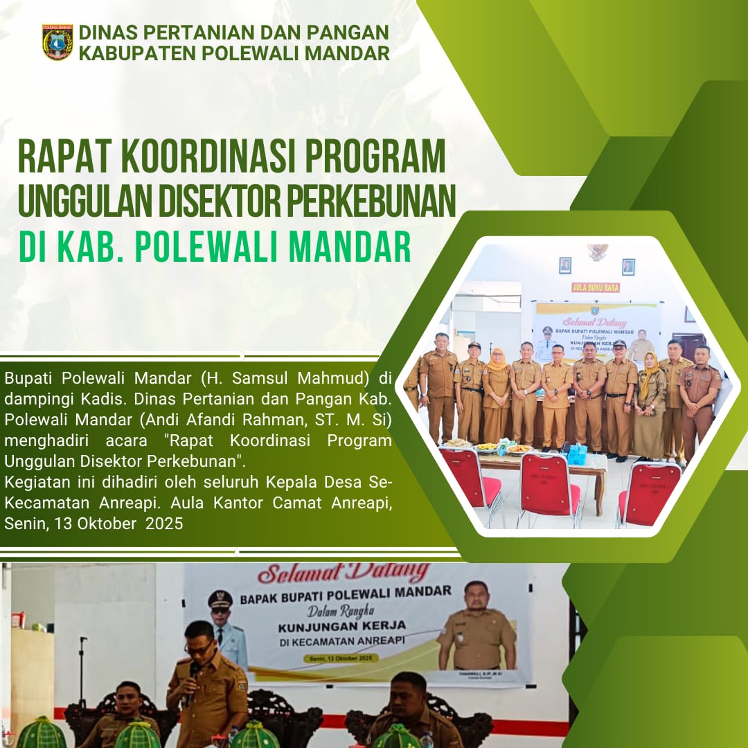 Dinas Pertanian dan Pangan Kabupaten Polewali Mandar memperingati Hari Tani Nasional yang jatuh pada tanggal 24 September dengan semangat “Petani Berdaulat”, kita meneguhkan kembali komit...