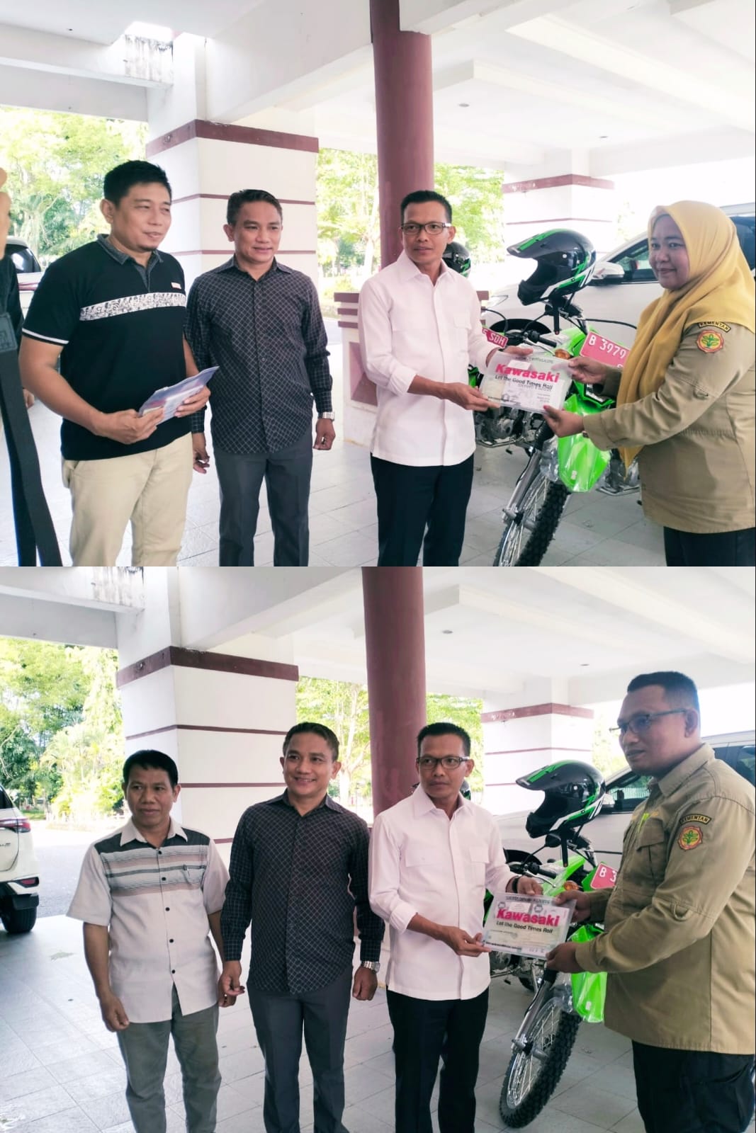 Polewali Mandar — Bupati Polewali Mandar, H. Samsul Mahmud, didampingi oleh Kepala Dinas Pertanian dan Pangan Kabupaten Polewali Mandar, Andi Afandi Rahman, S.T., M.Si, Kepala Bidang SDM, serta Koordinator Penyuluh, menyerahkan secara simbolis tiga unit motor dinas bantuan dari Kementerian Pertanian Republik Indonesia kepada penyuluh pertanian berprestasi.Penyerahan berlangsung di halaman Kantor Bupati Polewali Mandar sebagai bentuk apresiasi dan dukungan Pemerintah Daerah bersama Kementerian Pertanian terhadap peningkatan kinerja dan mobilitas penyuluh di lapangan.Adapun penerima motor dinas tersebut yaitu:1. Saifuddin, S.P.2. Narviani, S.P.3. Siti AisyaKetiga penyuluh tersebut dinilai berprestasi dalam mendampingi kelompok tani dan berkontribusi nyata terhadap peningkatan produktivitas pertanian di wilayah binaannya.Jenis motor yang diserahkan adalah Kawasaki KLX, yang diharapkan dapat menunjang mobilitas dan efektivitas penyuluh dalam menjalankan tugas lapangan, terutama di daerah dengan medan yang cukup berat.Dalam sambutannya, Bupati Polewali Mandar H. Samsul Mahmud menyampaikan apresiasi dan terima kasih kepada Kementerian Pertanian atas dukungan sarana operasional bagi penyuluh pertanian di daerah.“Kami berterima kasih kepada Kementerian Pertanian yang terus memberikan perhatian kepada penyuluh di daerah. Penyuluh adalah ujung tombak pembangunan pertanian, sehingga dukungan seperti ini sangat berarti. Kami berharap kendaraan ini digunakan dengan penuh tanggung jawab untuk mendukung pelayanan kepada petani,” ujar Bupati.Sementara itu, Kepala Dinas Pertanian dan Pangan Kabupaten Polewali Mandar, Andi Afandi Rahman, menambahkan bahwa bantuan motor operasional ini merupakan bentuk nyata sinergi antara pemerintah pusat dan daerah dalam memperkuat sistem penyuluhan pertanian. “Kami berharap bantuan ini dapat meningkatkan semangat dan efektivitas kerja penyuluh di lapangan, sehingga pelayanan kepada petani semakin cepat dan merata,” tuturnya....